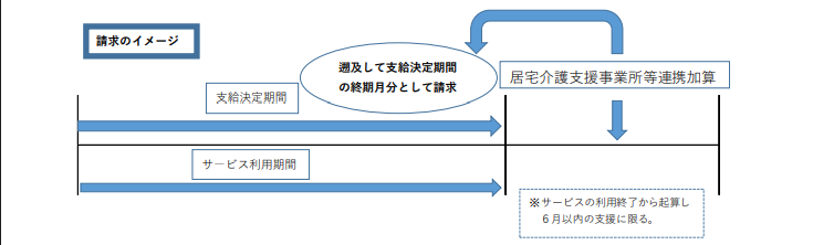 (ⅰ)支給決定期間とサービスの利用終了月が同一の場合サービス利用終了から起算して6月の範囲内で支援が終了した後に支給決定期間の終期月分として改めて請求すること。