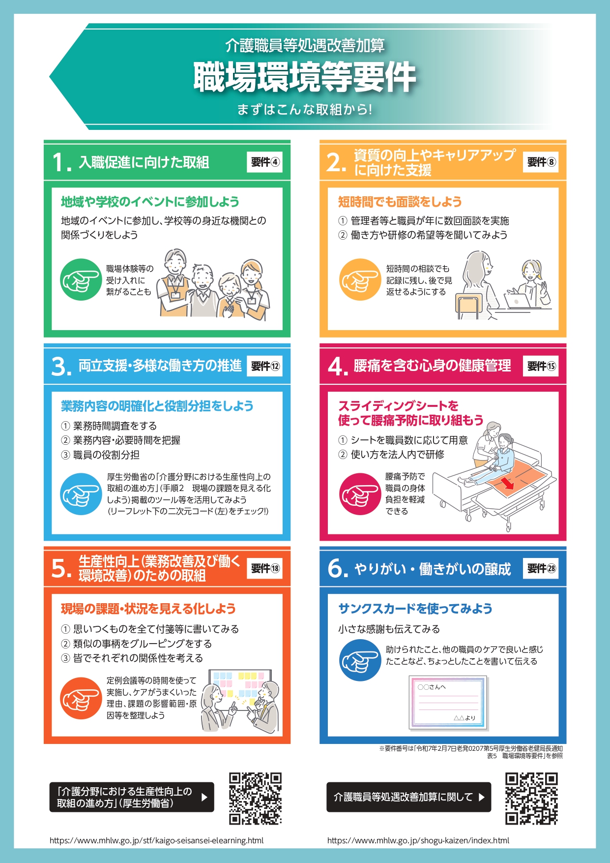 職場環境等要件は6つの区分に整理されています。