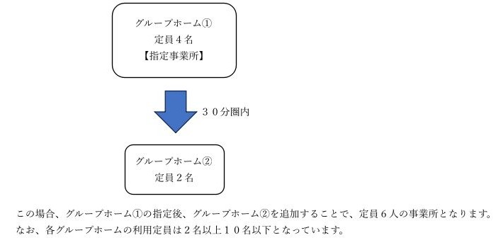また、指定を受けたグループホームは、30分圏内にある複数の住居をまとめて1つの事業所として運営することが可能です。